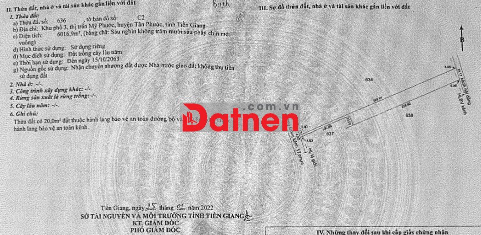 Quý vị đang xem nội dung tin rao "Thanh lý đất tại Mỹ Phước, Tiền Giang 8104,8 m2 có 1988m2 thổ, giá tốt". Mọi thông tin, nội dung liên quan tới tin rao này là do người đăng tin đăng tải và chịu trách nhiệm. Datnet.com.vn luôn cố gắng để các thông tin được hữu ích nhất cho quý vị tuy nhiên Datnet.com.vn không đảm bảo và không chịu trách nhiệm về bất kỳ thông tin, nội dung nào liên quan tới tin rao này.
