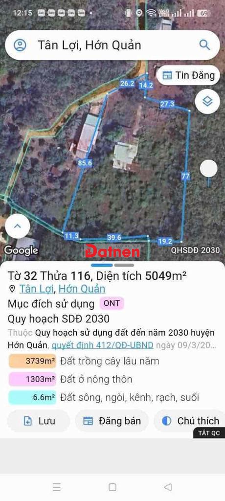 Đất nhà Bình Phước - chưa qua đầu tư 5000m² đất Hớn Quản, Bình Phước - đường bê tông, xe tải ra vào, có 400m² thổ cư, có nhà cấp 4 siêu rộng.