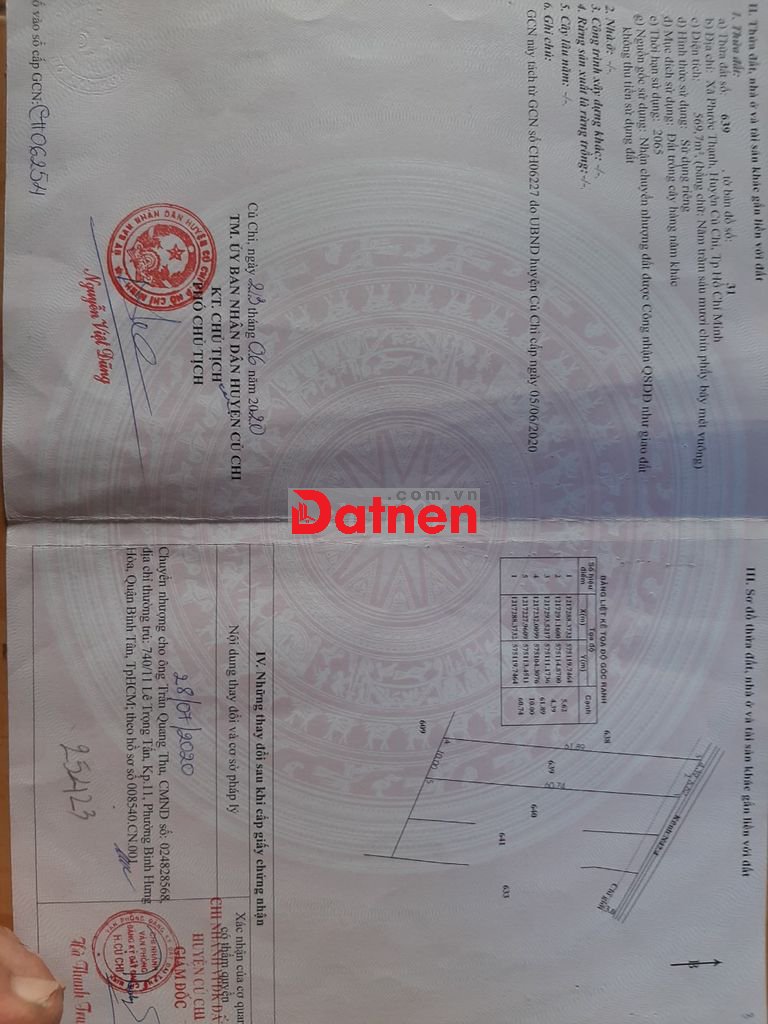 Cần bán đất xã phước thạnh củ chi