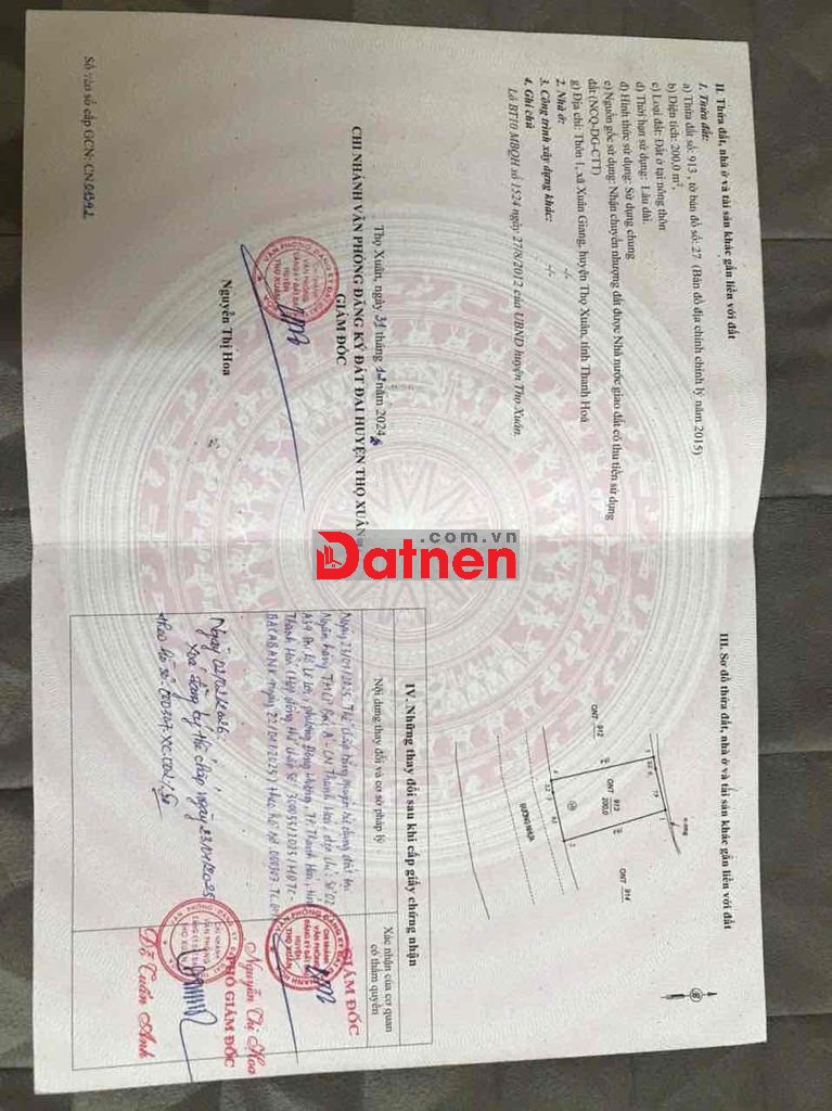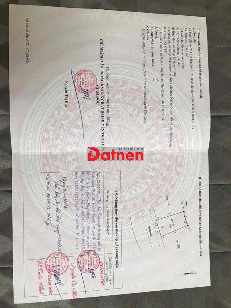 Chính chủ bán 02 lô đấu giá diện tích 200m/ lô mặt bằng tại xã Xuân Giang - Thọ Xuân