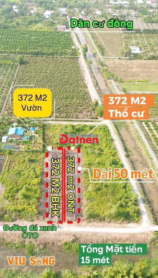 372mv THỔ 372mv VƯỜN tổng 744mv,ĐƯỜNG ÔTÔ NGAY ĐẤT, THỦ THỪA L.A
