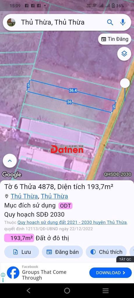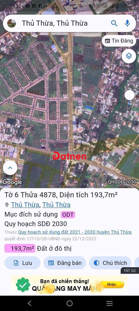 đất thổ thị trấn thủ thừa trung tâm chợ khu vực phát triển giá lời
