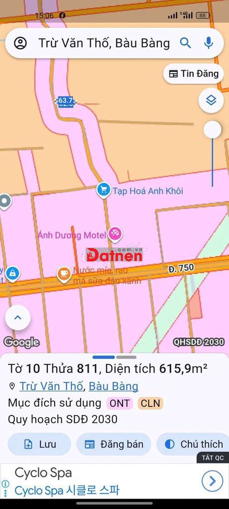 Diện tích 615,9m2 ngang 10 dài 63
