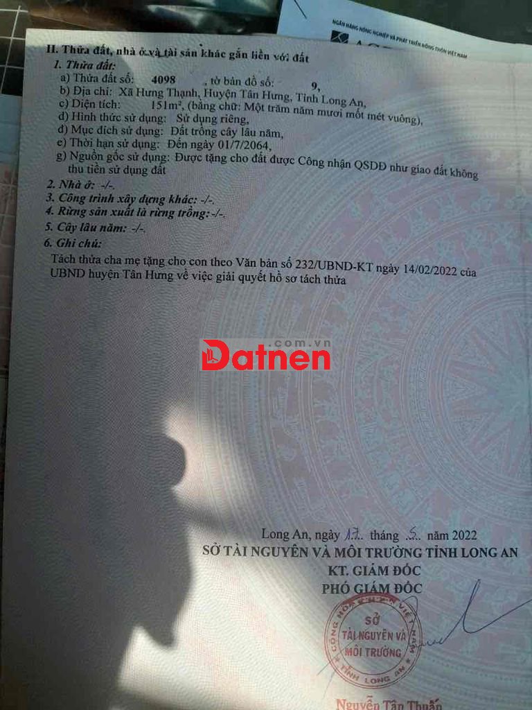 Quý vị đang xem nội dung tin rao "bán đất mặt tiền đường Tân Hưng- Hưng Điền". Mọi thông tin, nội dung liên quan tới tin rao này là do người đăng tin đăng tải và chịu trách nhiệm. Datnet.com.vn luôn cố gắng để các thông tin được hữu ích nhất cho quý vị tuy nhiên Datnet.com.vn không đảm bảo và không chịu trách nhiệm về bất kỳ thông tin, nội dung nào liên quan tới tin rao này.