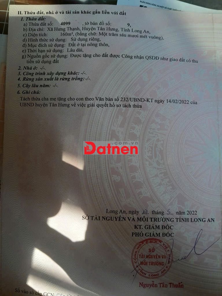 Quý vị đang xem nội dung tin rao "CẦN BÁN GẤP 2 LÔ ĐẤT THỔ CƯ MẶT TIỀN ĐƯỜNG HƯNG ĐIỀN- TÂN HƯNG- SỔ SẴN". Mọi thông tin, nội dung liên quan tới tin rao này là do người đăng tin đăng tải và chịu trách nhiệm. Datnet.com.vn luôn cố gắng để các thông tin được hữu ích nhất cho quý vị tuy nhiên Datnet.com.vn không đảm bảo và không chịu trách nhiệm về bất kỳ thông tin, nội dung nào liên quan tới tin rao này.