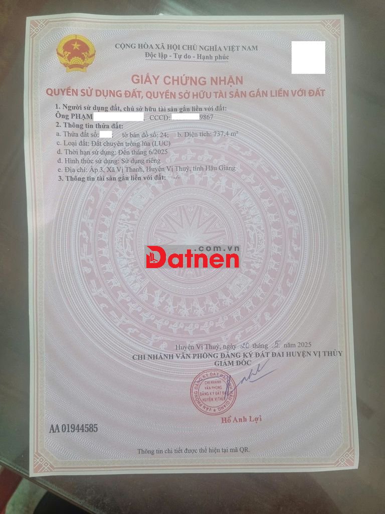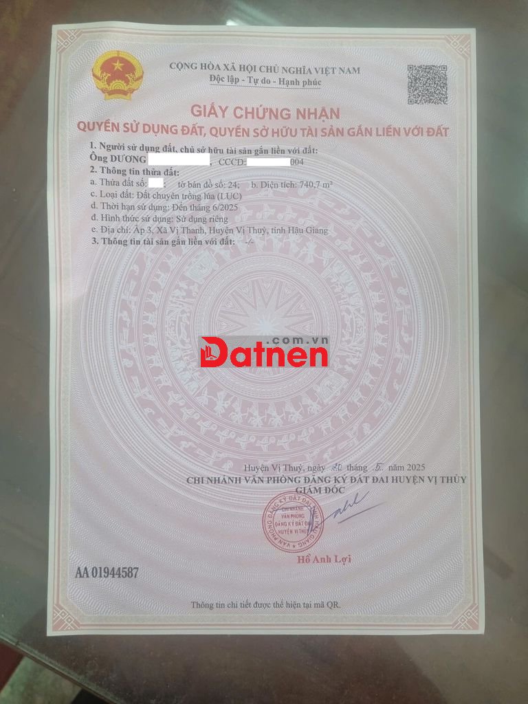 - Pháp lý: Sổ hồng chính chủ (Đất lúa)