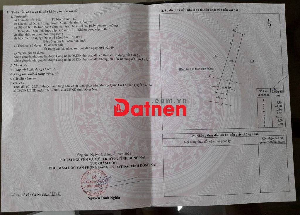 MTQL1A, Xuân Hòa, Đồng NaiMức giá