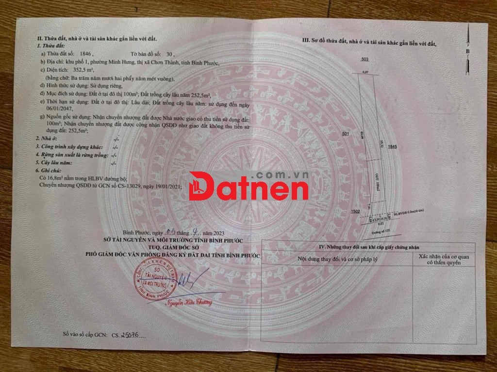 Diện tích 8. 593 m Đã tách Ra làm 4 sổ nhỏ