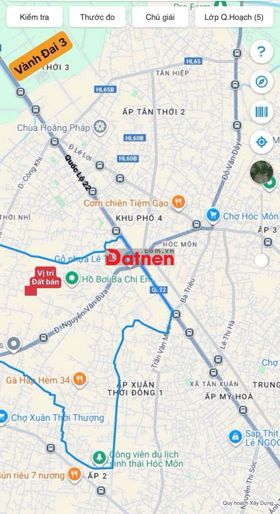 • Đất Thổ cư . Mặt Tiền Đồng Bà Canh . Xuân Thới Sơn . HM