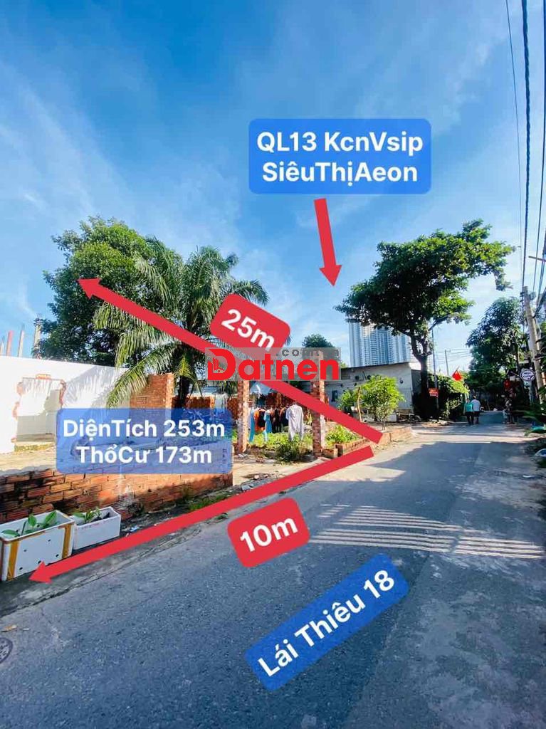 • ĐấtLáiThiêu 18 Gần SiêuThịAeon QL13 DiệnTích 253m Ngang10m