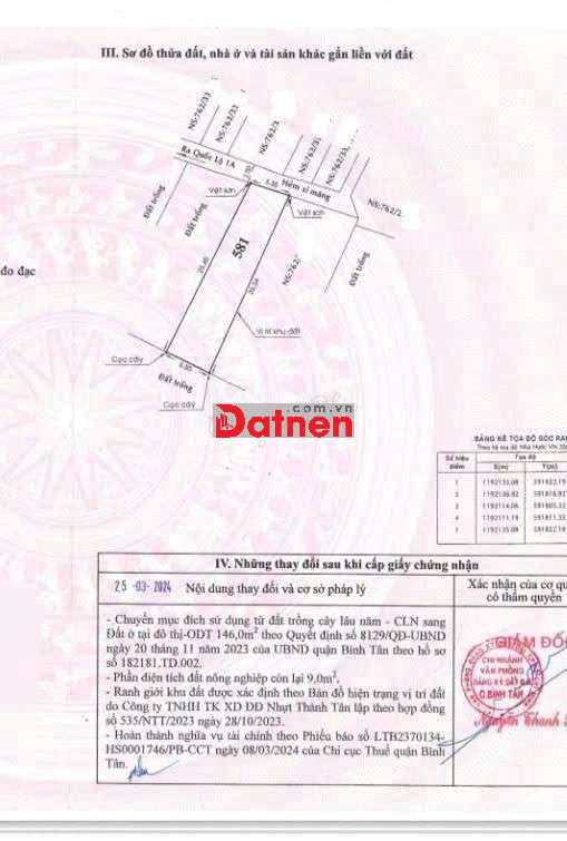 CCG Đất sổ riêng 1/ kênh Tham Lương đang làm thuộc BHH B. Bình tân