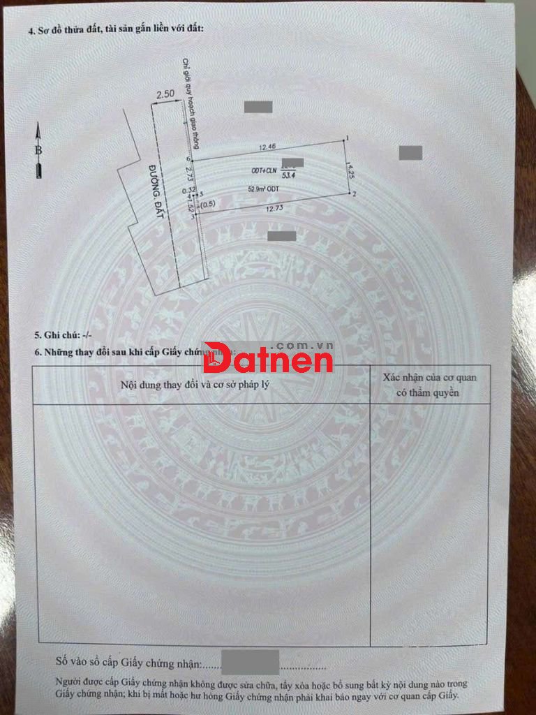 Đất 3.45 tỷ TL- 53.1m2 (ngang 4.3). Thổ cư 52.9m