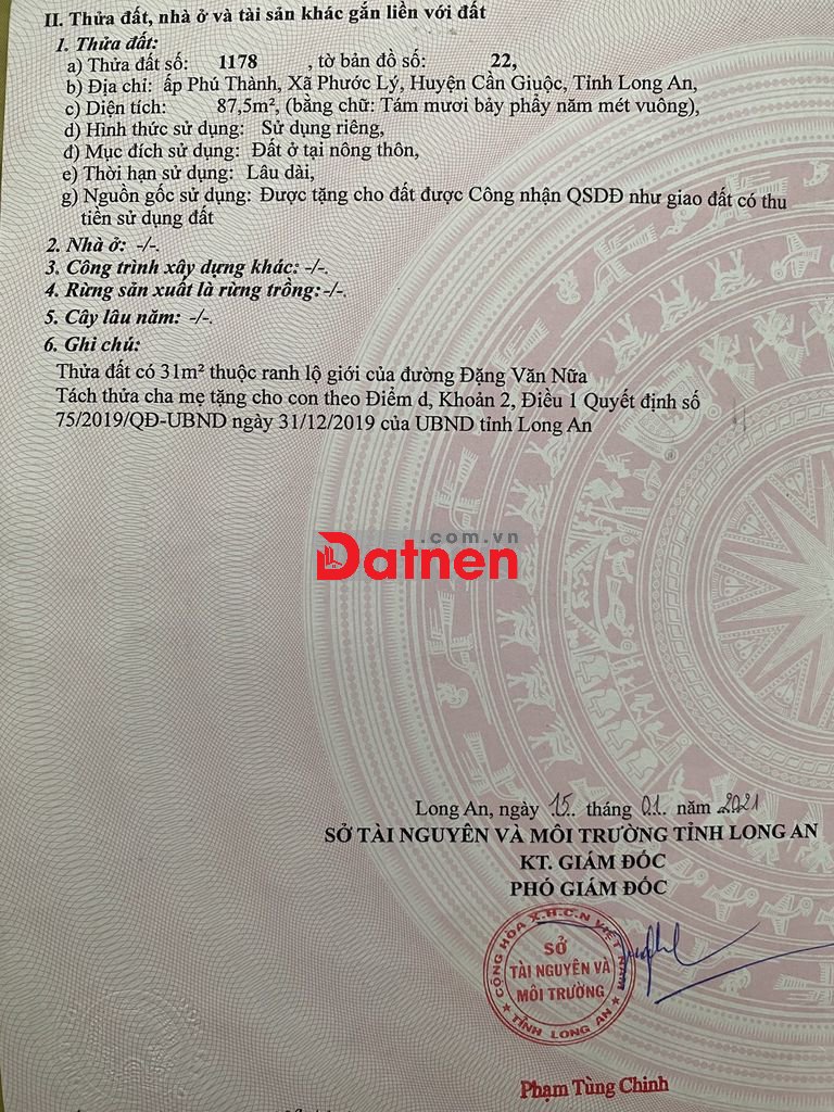 Thông tin chi tiết: -kẹt tiền cần chia tay 1800m mặt tiền kênh N20,