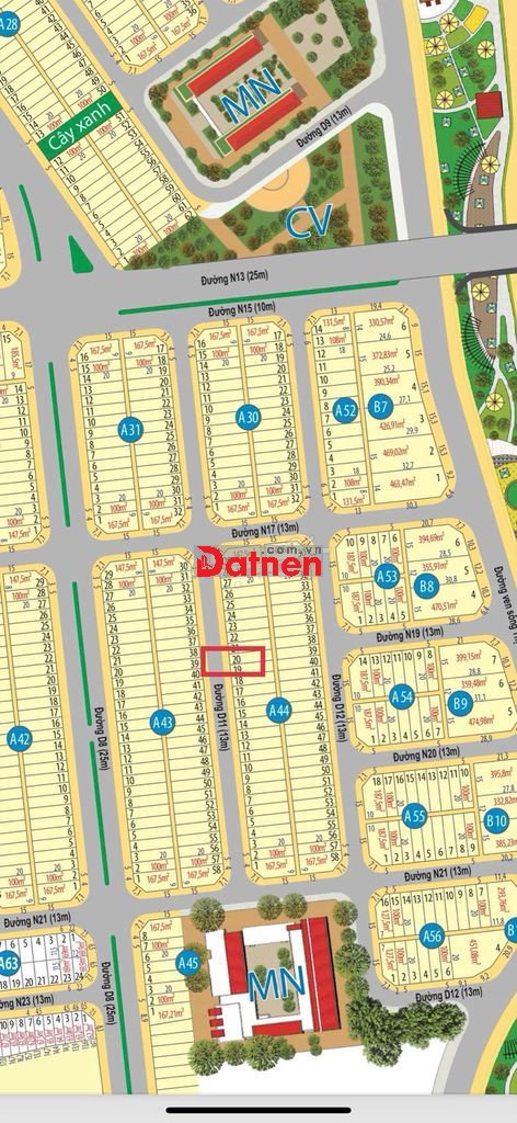 A44-20, lô sạch , 100m2 ( 5*20) giá 1ty050 bao thuế phí