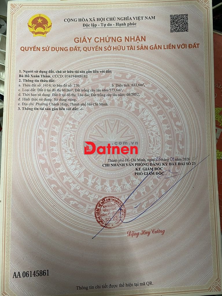 Đất tho cư tdm , thong tin dat có trên sổ , gần trường Marie Curie