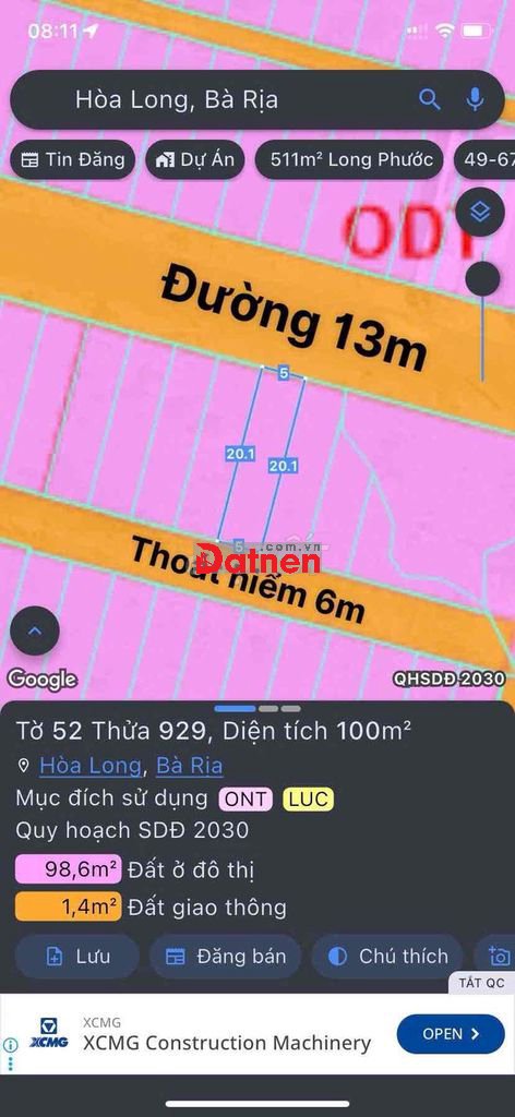 Quý vị đang xem nội dung tin rao "Bán Đất Hoà Long Bà Rịa ( Lan Anh 2-5 )100m2 full thổ gần KCN Sonadezi". Mọi thông tin, nội dung liên quan tới tin rao này là do người đăng tin đăng tải và chịu trách nhiệm. Datnet.com.vn luôn cố gắng để các thông tin được hữu ích nhất cho quý vị tuy nhiên Datnet.com.vn không đảm bảo và không chịu trách nhiệm về bất kỳ thông tin, nội dung nào liên quan tới tin rao này.