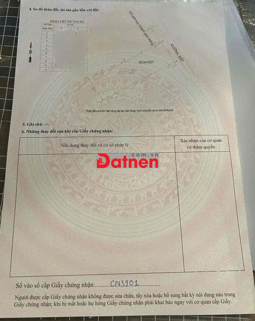 Thổ cư 60m2. Sổ hồng riêng.