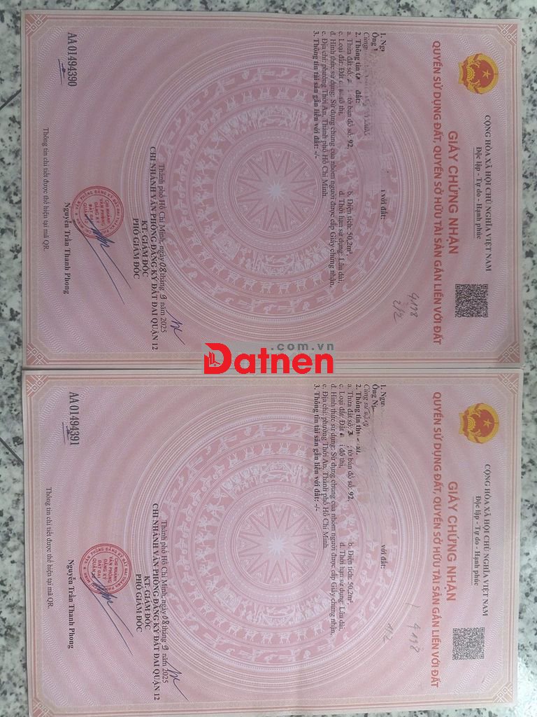 cần bán đất nền full thổ cư Thạnh Xuân, Quận 12, diện tích 4.02x12.5m