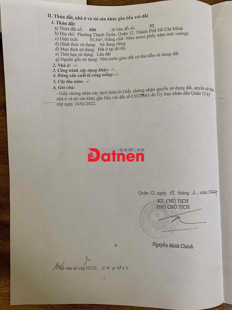Thông tin chi tiết: Đất thổ cư q12, chính chủ, 6m5, dài 8, 3ty550