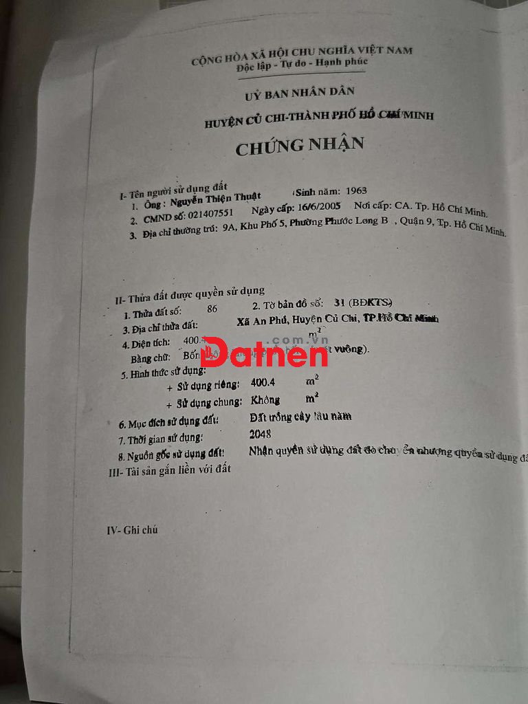 Quý vị đang xem nội dung tin rao "Bán đất mặt tiền đường Bến Súc lên được thổ cư 400m2". Mọi thông tin, nội dung liên quan tới tin rao này là do người đăng tin đăng tải và chịu trách nhiệm. Datnet.com.vn luôn cố gắng để các thông tin được hữu ích nhất cho quý vị tuy nhiên Datnet.com.vn không đảm bảo và không chịu trách nhiệm về bất kỳ thông tin, nội dung nào liên quan tới tin rao này.