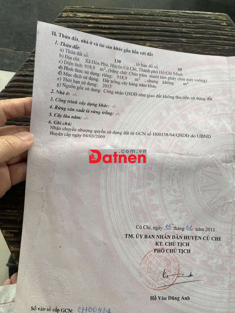 Chính chủ cần tiền bán gấp 1000m2 đất xã Hòa Phú (nay thuộc xã Bình Mỹ), Củ Chi. Ngay mặt tiền Bên Than đi vào khoảng 200m. Khu vực dân cư hiện hữu. Gần chợ sáng, gần đường cao tốc vành đai 3 đang thi công. Rất tiềm năng. Giá 2 tỷ. ( chỉ 2tr/m2)
