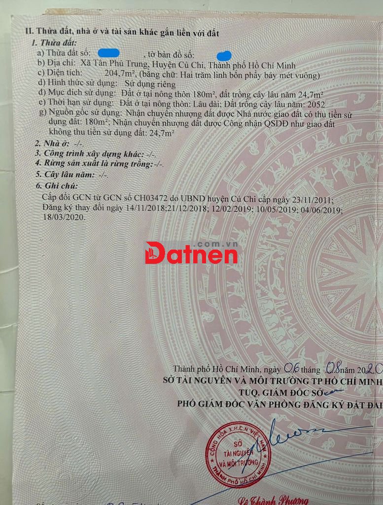 Diện tích 204m2 ngang 11m có 180m2 thổ cư