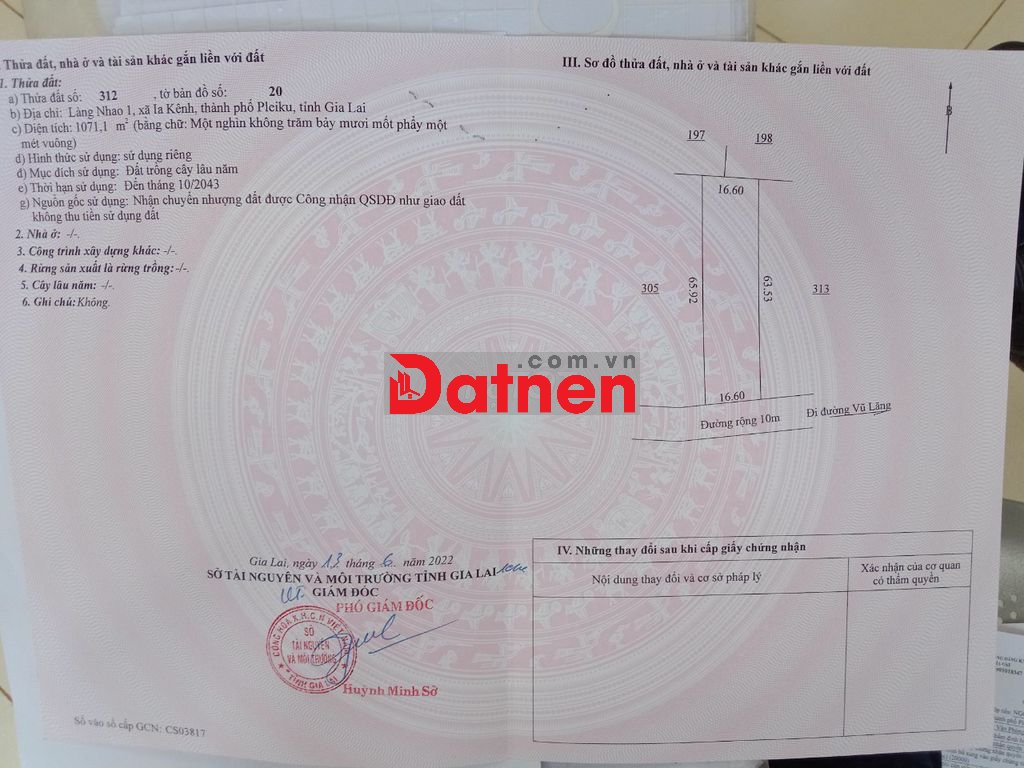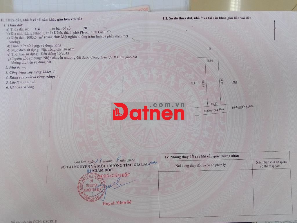 Đất nền Đường Vũ Lăng, Xã Gào, Pleiku, Gia Lai với diện tích 3000 m2, mặt tiền rộng 50m, ngõ vào 10m