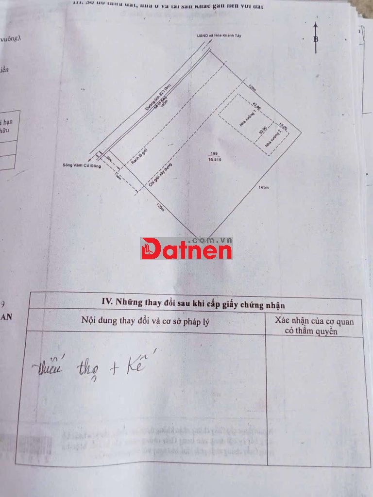 Bán Nhà Xưởnng Và Đất MT Đường 823 Hòa Khánh Tây, Đức Hòa, Long An, Cách Thị Trấn Hậu Nghĩa 2,5km, DT Đất 140x120=16515m2, Đất SKC Đóng Tiền 1 Lần, Đã Có Nhà Xưởnng 2000m2, Có PCCC, Trạm Điện, Tiện Xây Dựng Nhà Xưởnng Sản Xuất, Cho Thuê...