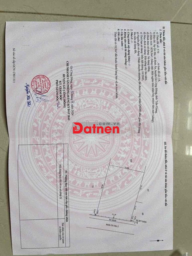 Chính chủ bán đất mặt tiền đường ôtô đến đất, đường Gò Me 2 (xã Bình Ân ) nay là xã Tân Điền 6100 m2 (có 1500m đất trồng cây lâu năm có nền đất, tổng diện tích 32 m x mặt tiền 200 m, vị trí đẹp, khu được chuyển thổ, không có mồ mã, thuận tiện xây nhà xưởng.... chăn nuôi, trồng cây ăn trái, nhà vườn v.v.v