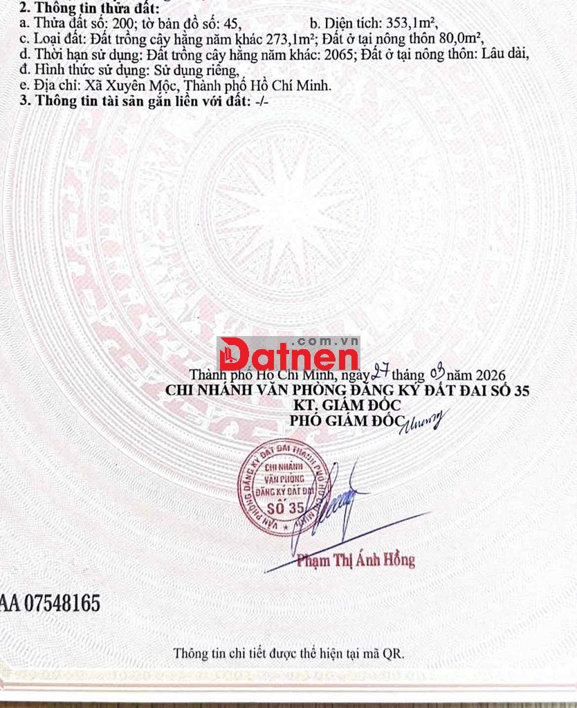 Thông tin chi tiết: Em chính chủ cần bán lô đất sổ sẵn công chứng ngay , tiện ích đầy đủ , đường nhựa thông kinh doanh buôn bán được . Vị trí đất đi ra biển chỉ 3 km thích hợp xây biệt thử nghỉ dưỡng
